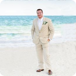Champagne Linen Men Suits Beach Wedding Custom Made Man