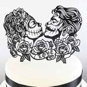 Day Of The Dead Rose Gothic Rock Alternative Wedding Cake Topper