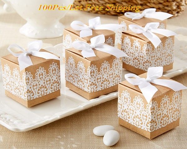 2016 Creative Wedding Gift Box Of Rustic And Lace Kraft Favor Box For Wedding And Party Decoration Candy Box And Party Favor Box 100pcs Lot