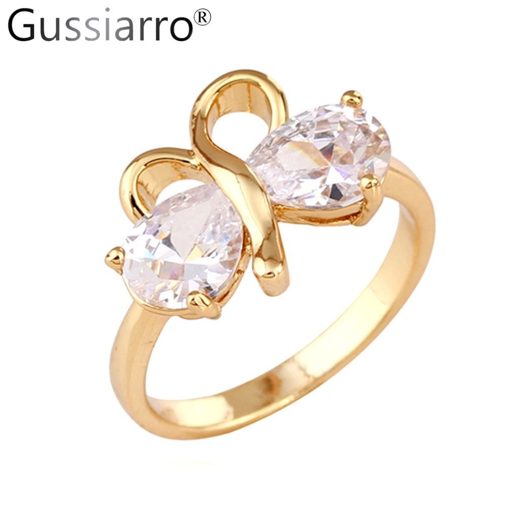 Gussiarro Video Show 2019 Fashion Gold Color Ring Jewelry For Women White Cubic Zirconia Wedding Engagement Rings Gift Box