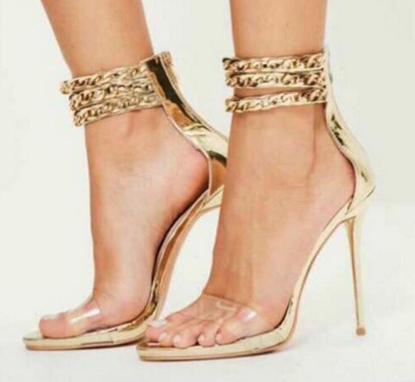 Sexy Women Summer Wedding Shoes Soft Leather Transparent Pvc With Chain Pumps High Heels Sandals Woman Thin Heels Ladies Shoes Ladies Sandals Girls