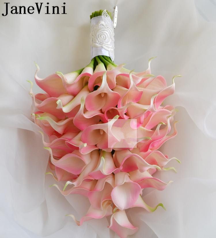 Janevini Pink Droplets Bridal Bouquet De Fleurs 2019 Artificial Calla Lily Flowers Wedding Bouquet Brooches Holder Bridesmaid Bouquets