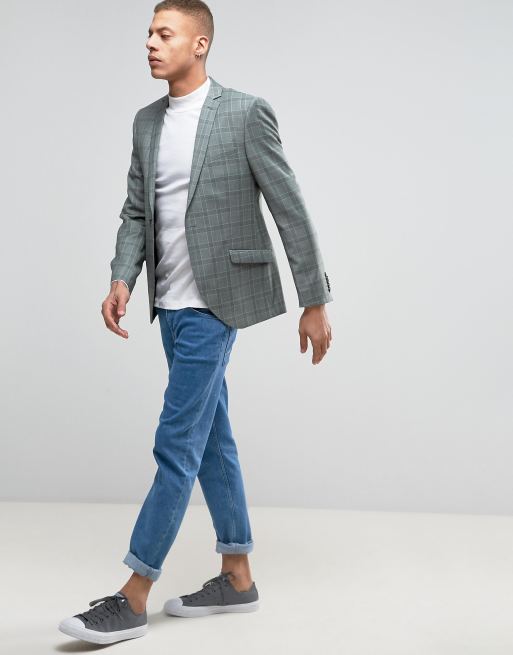 Skinny Wedding Suit Jacket In Summer Dogstooth