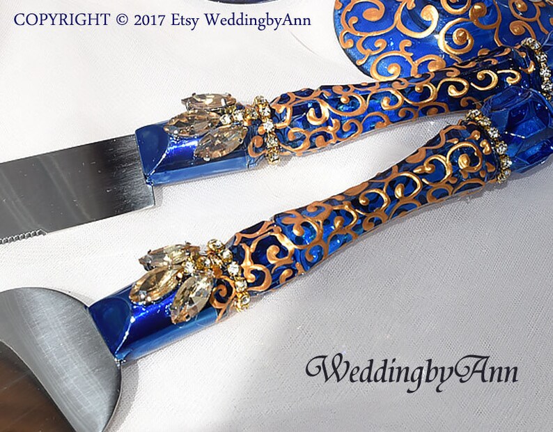 Royal Blue And Gold Wedding Cake Serving Set Wedding Cake Serving Set Wedding Cake And Knife Serving Set Cake Accessories Bridal Shower