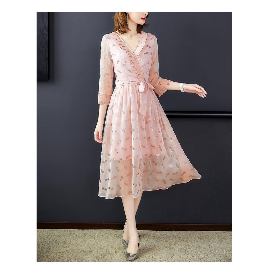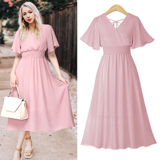 M 4xl Plus Size Dress V Neck Solid Pink Dress Loose Short Sleeve Summer Party Wedding Dresses