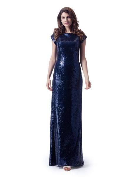Navy Blue Sequins Long Modest Bridesmaid Dresses With Short Sleeves Fit Formal Wedding Party Dresses For Winter Wedding Custom Made Classic Bridesmaid