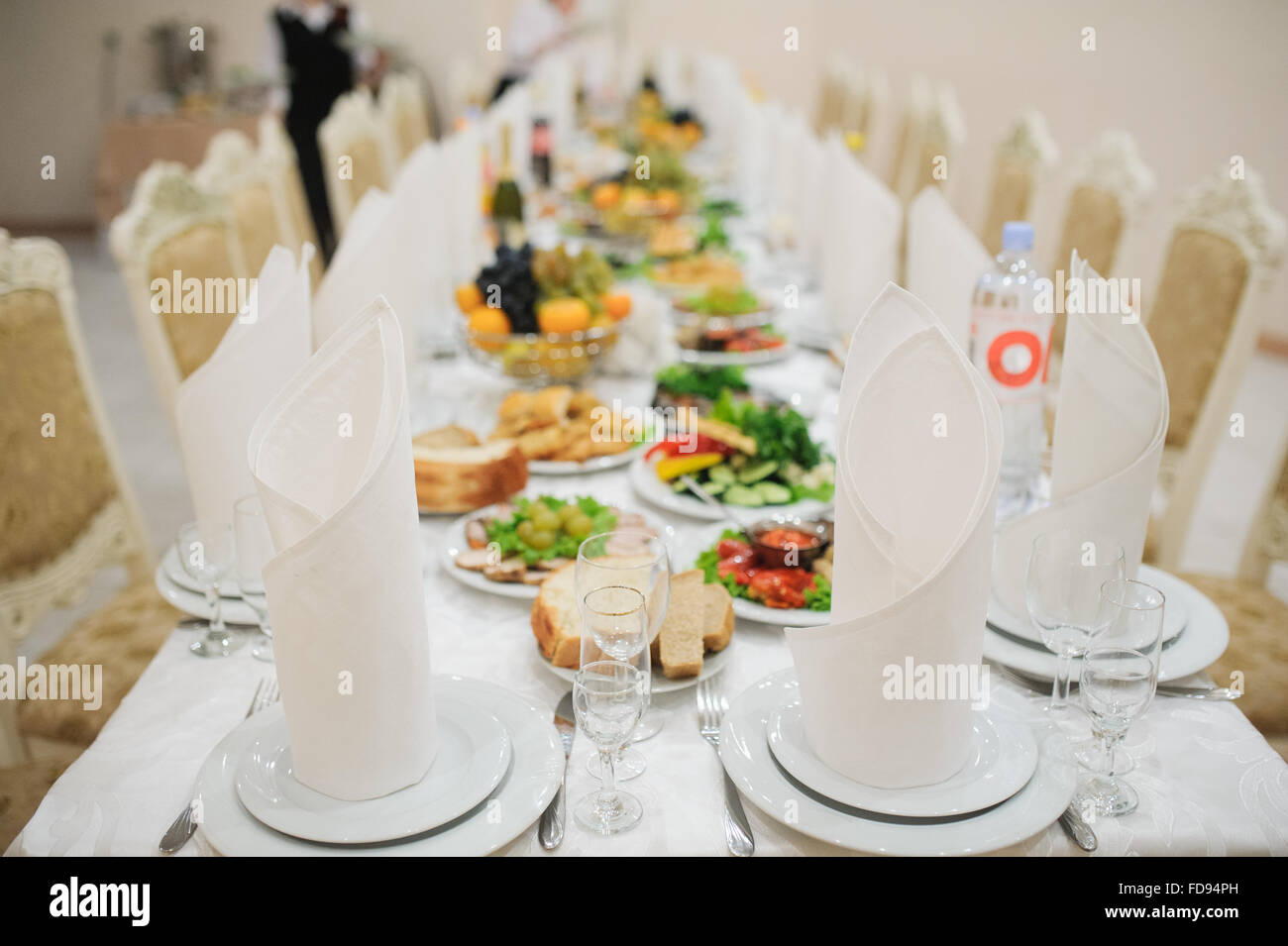 Banquet Wedding Table Setting On Evening Reception Awaiting Guests